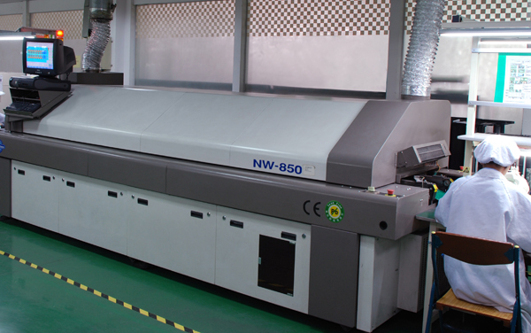 無鉛八溫區熱風回流焊設備,用于表面貼裝基板的整體焊接,整機采用計算機控制,具有Win2000操作界面和豐富的軟件功能、具有自動傳送的隧道式結構,由多預熱區、焊接區、風冷區組成,全熱風加熱方式,上、下溫區獨立熱源,各加熱區單獨PID控溫,具有通訊控制的無級調速功能。